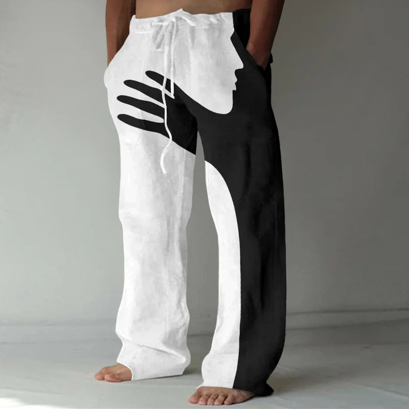BrosWear Asymmetric Abstract Art Casual Pants