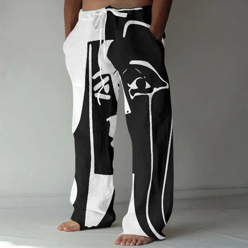 BrosWear Asymmetric Abstract Art Face Casual Pants
