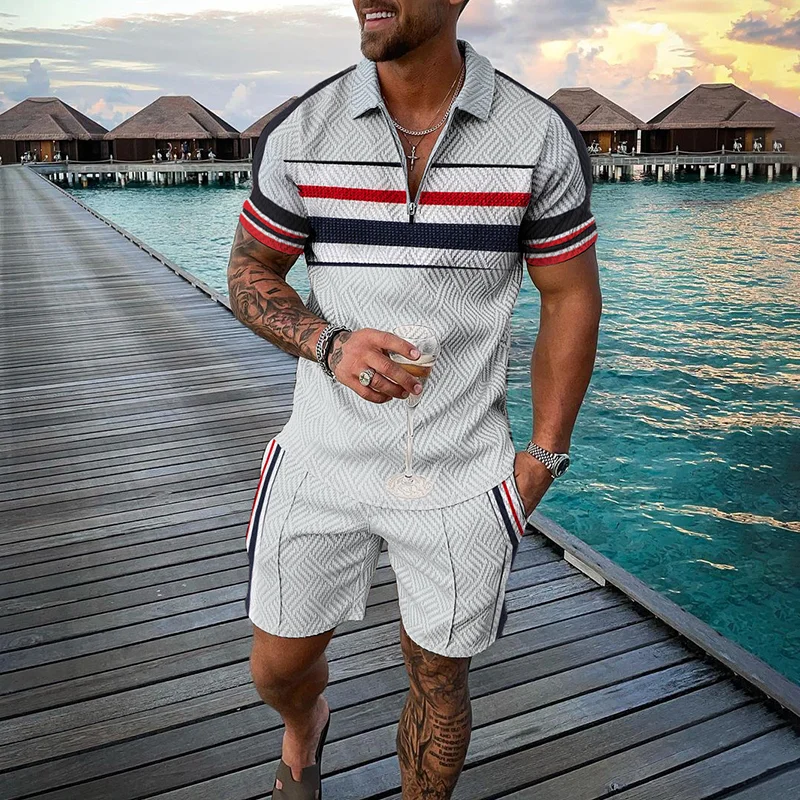 BrosWear Casual Color Contrast Line White Polo Shirt And Shorts Two Piece  Co-Ord